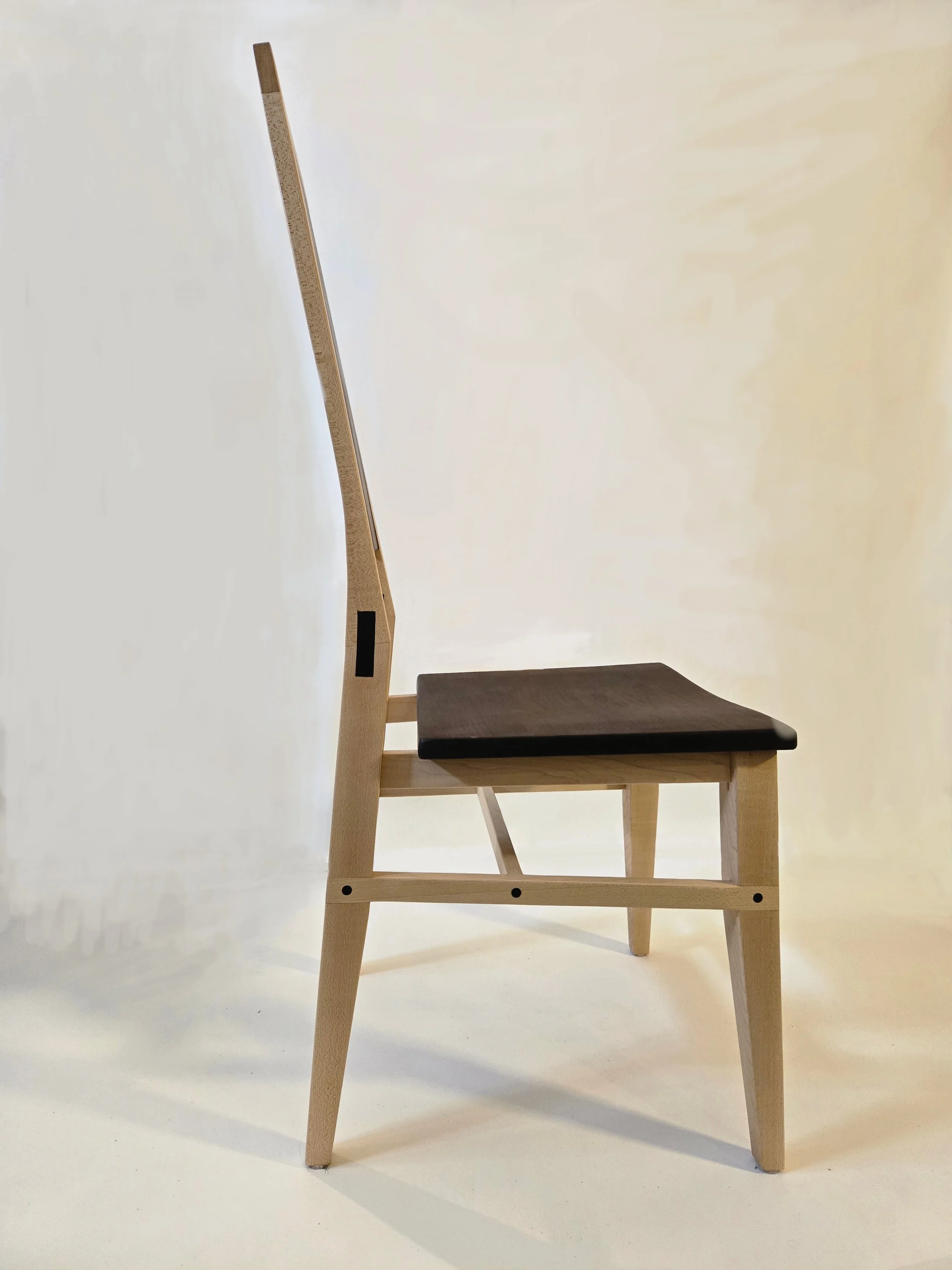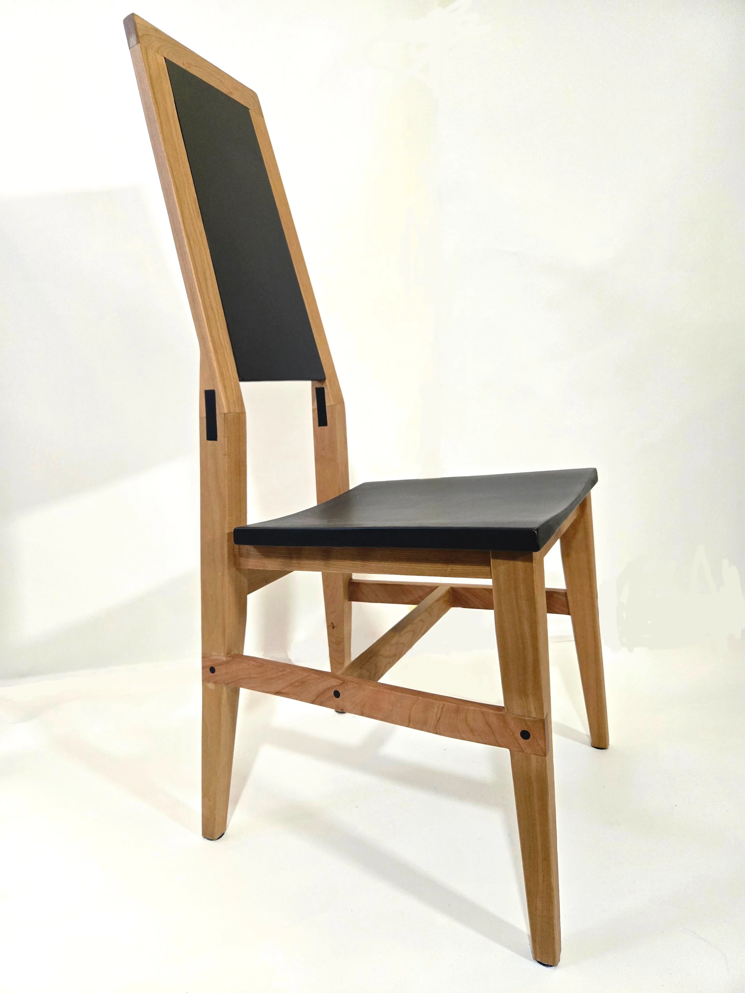 Photos below are of a Hi-Bak Dining Chair - Maple Wood for seat and back support, stained black, Cherry wood used for all other parts.