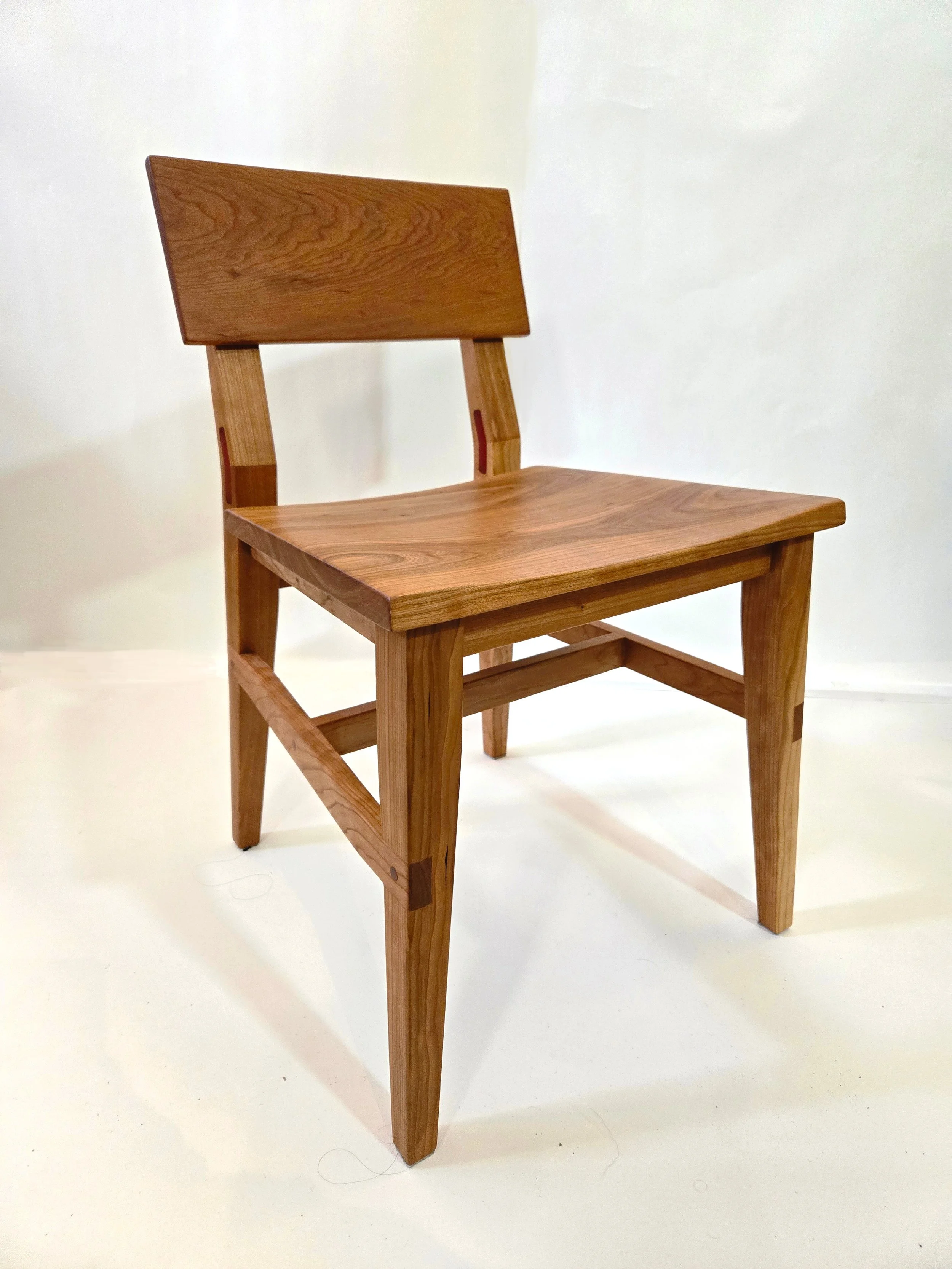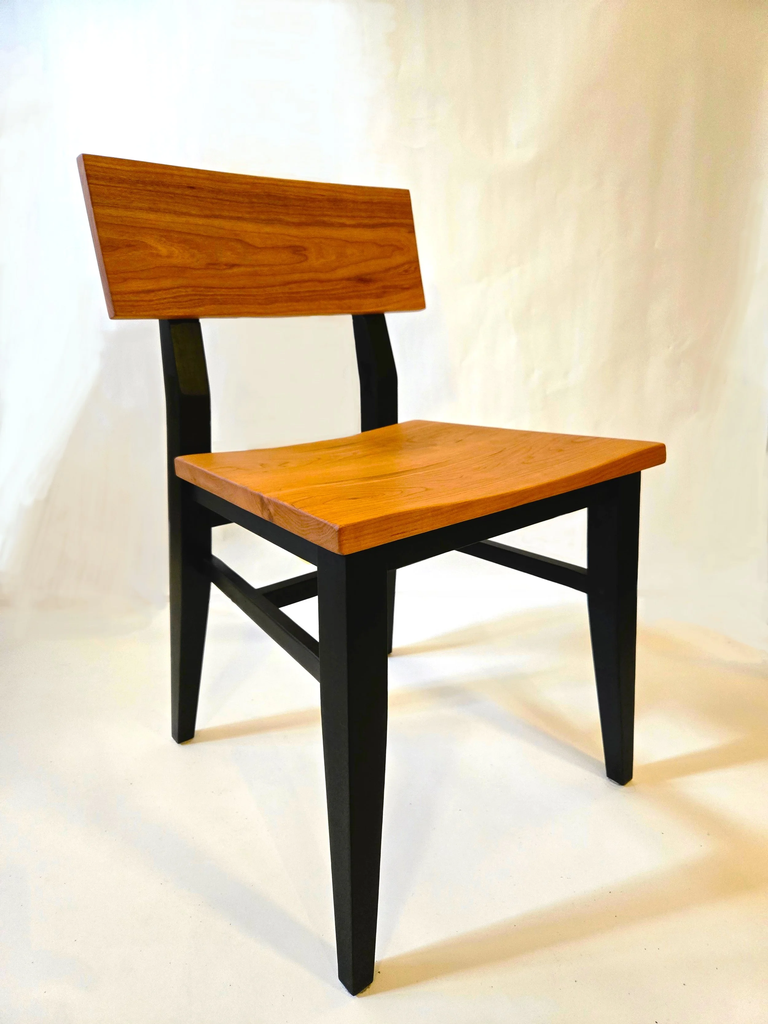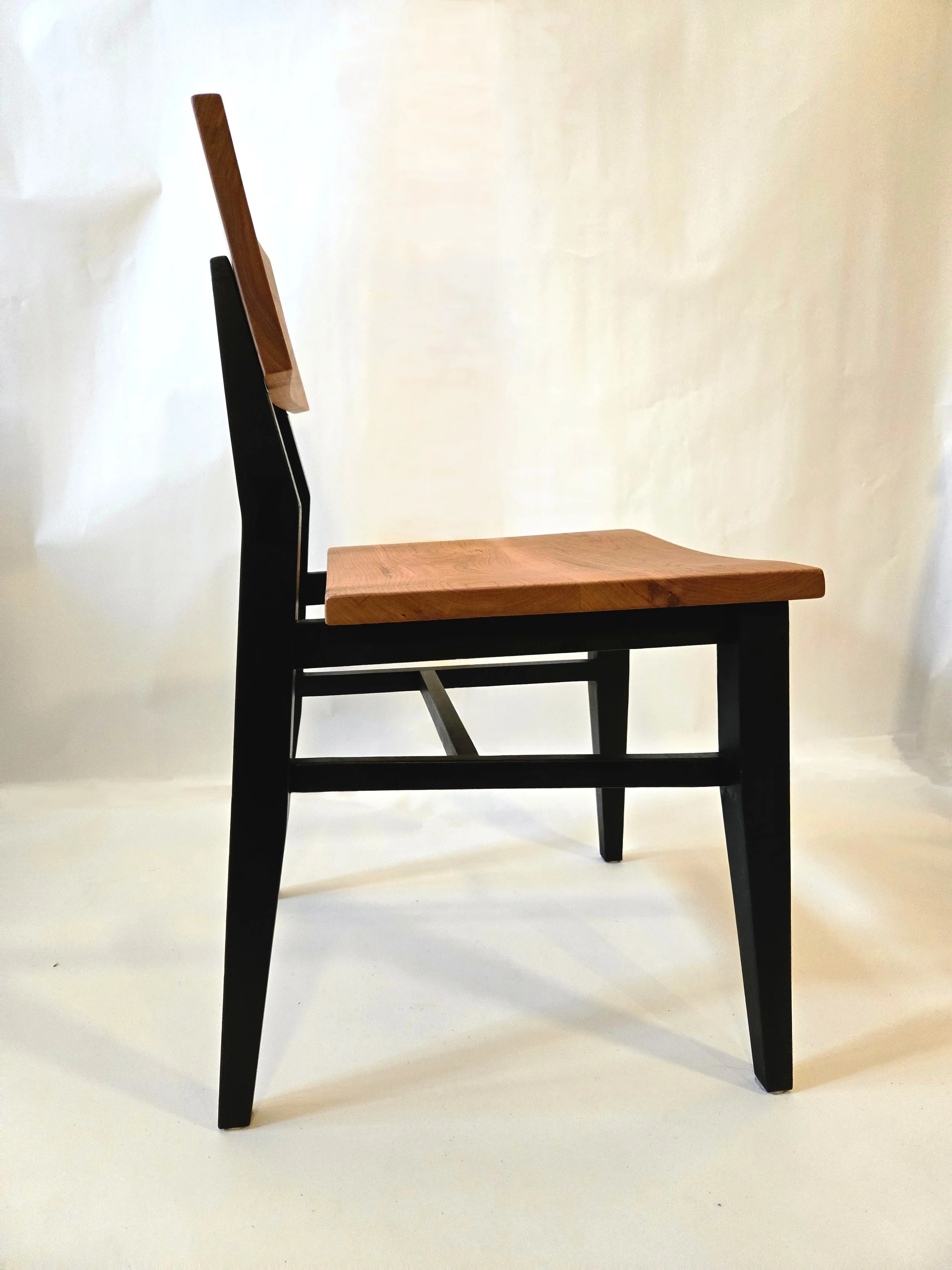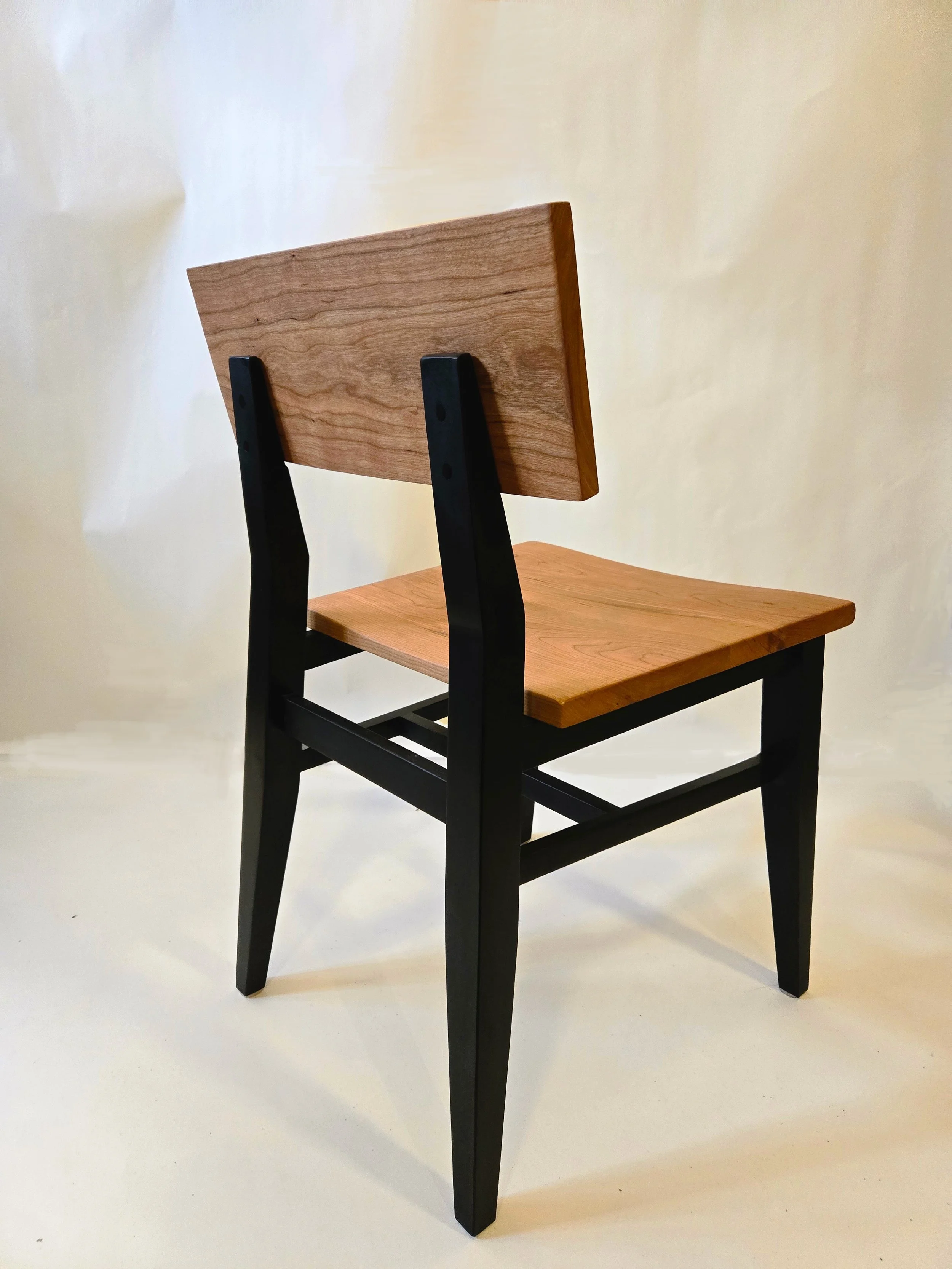 Lo-Bak Dining Chair - Cherry Wood for seat and back support, Maple wood stained black used for all other parts.